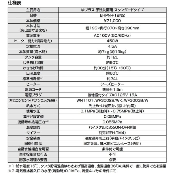■ 単水栓との組合せはできません。必ず湯水混合できる先止め式水栓金具と組み合わせ、水を混ぜてお使いください。高温の湯が出てヤケドの原因になります。