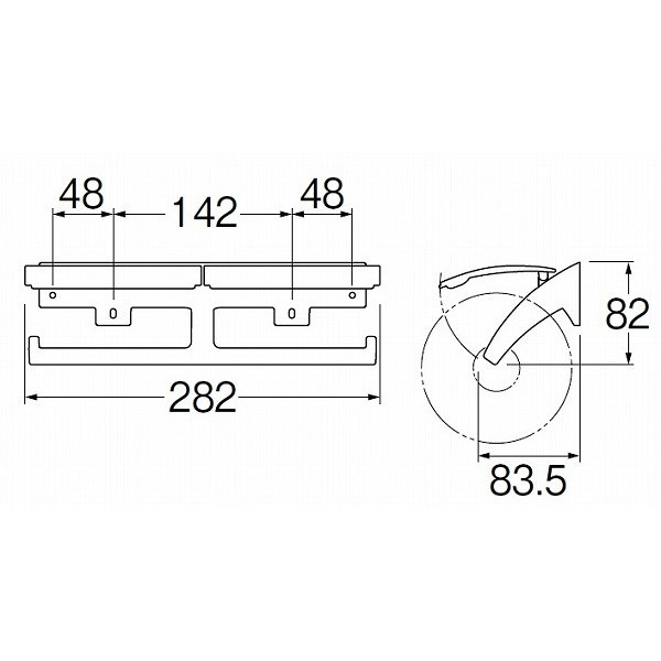 ●ペーパー交換の為左右両側に120mm以上のスペースが必要です。