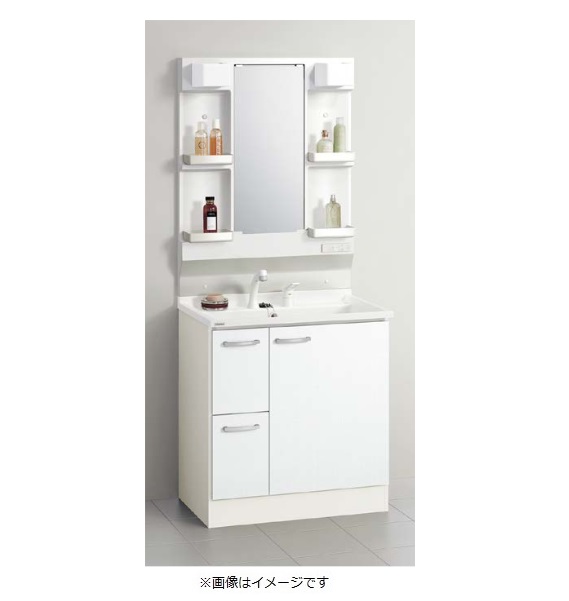 洗面化粧台引出しタイプ、扉:スムースホワイト、水栓:シャワー付シングルレバー水栓