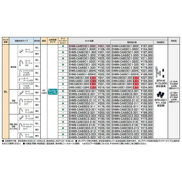 ゆプラス 自動水栓一体型 適温出湯タイプ 6L 単水栓 オートマージュA 排水栓あり 100Vタイプ オートウィークリータイマー