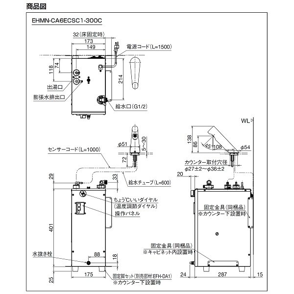 ■ 洗面器や手洗器への取付けは組合せ可能であることをご確認いただく必要があります。メーカーカタログの自動水栓一体型電気温水器・加温自動水栓と洗面器・手洗器の組合せ一覧表でご確認ください。