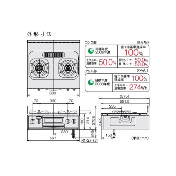 外形寸法:高さ 270.5×幅 600×奥行 575mm