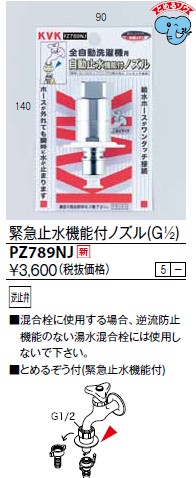 水栓部品 KVK PZ789NJ 緊急止水機能付ノズル(G1/2)(とめるぞう付(緊急止水機能付))