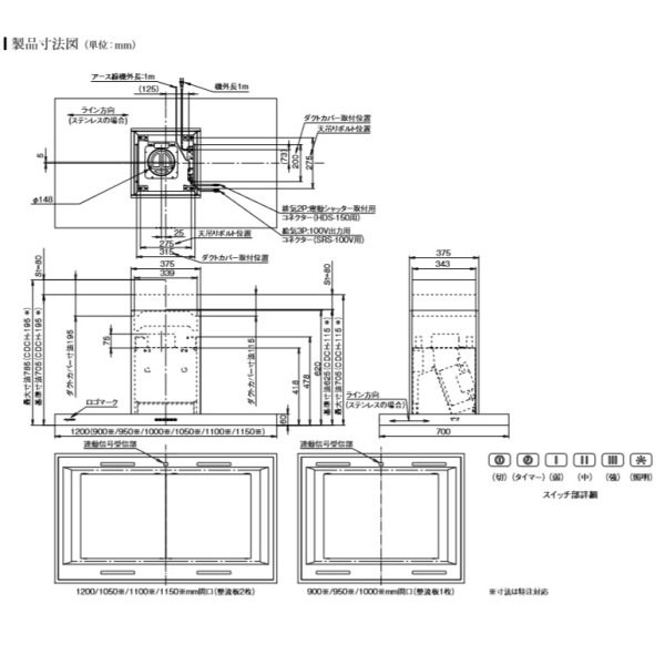 ■製品高さ[mm]:625〜785(別売調整ダクトカバー使用時)