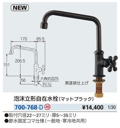 水栓金具 カクダイ 700-768-D 泡沫立形自在水栓//マットブラック