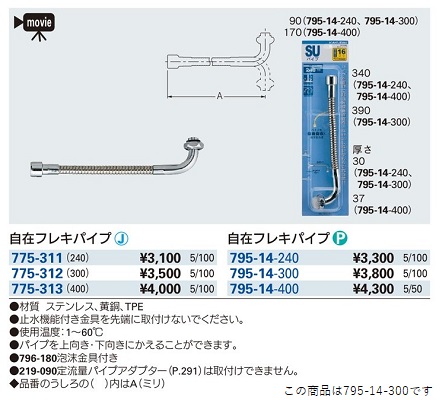 水栓金具 カクダイ 795-14-300 自在フレキパイプ//300 [□]