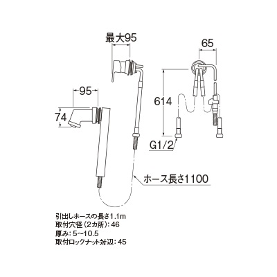 水栓金具 三栄水栓 K3715EK-13 シングルスプレー混合栓 壁出 洗面所用 節水水栓 ホース引出し式 寒冷地用