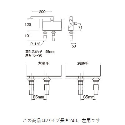 水栓金具 三栄水栓 SK781L-1-S9L24 サーモデッキシャワー混合栓 バスルーム用 節水水栓 左用 パイプ長さ240