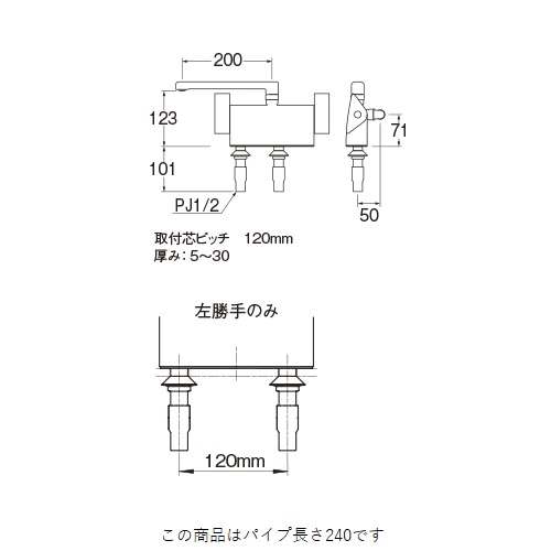 水栓金具 三栄水栓 SK781L-3-S9L24 サーモデッキシャワー混合栓 バスルーム用 節水水栓 左用 パイプ長さ240