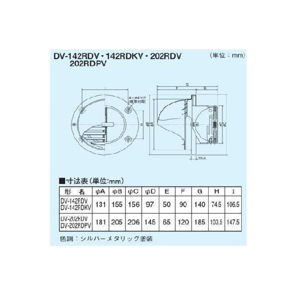 日本キヤリア/旧東芝 換気扇 システム部材 丸型パイプフード 【DV-202RDPV】 φ150用 ステンレス製(ガラリ付) シルバーメタリック塗装