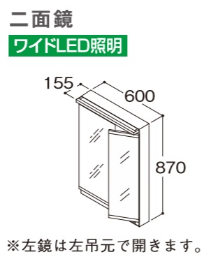 TOTO 化粧鏡 【LMWB060A2GLC2G】 サクア 二面鏡 ワイドLED照明 エコミラーあり 間口600 ♪ [戻る]