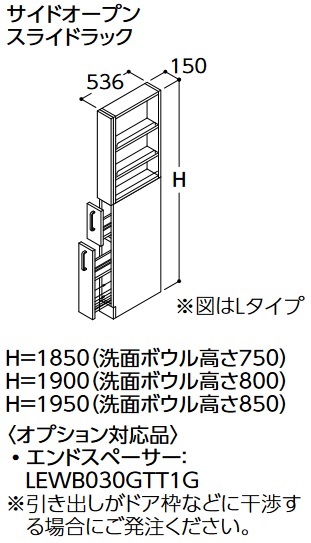 TOTO トールキャビネット 【LTSWB015BN R/L 1 W/P/B/J/C/M】 サクア サイドオープンスライドラック 間口150 洗面ボウル高さ800 受注生産品 ♪§