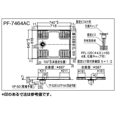 INAX/LIXIL PF-7464AC/FW1-BL 洗濯機パン BL認定品 中央排水 トラップ別売 FW1ホワイト[◇]
