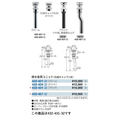 水栓金具 カクダイ 432-431-32 排水金具ユニット(化粧キャップつき) ブラック