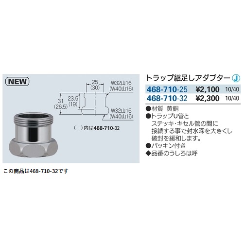 水栓金具 カクダイ 468-710-32 トラップ継足しアダプター [□] [戻る]