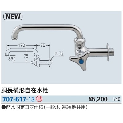 水栓金具 カクダイ 707-617-13 胴長横形自在水栓 [□]