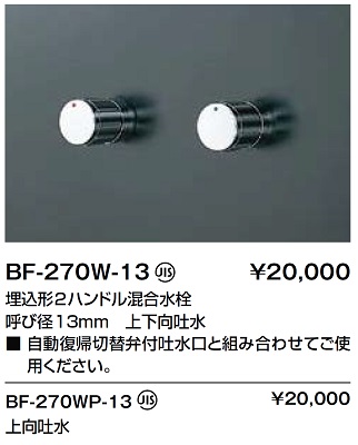 水栓金具 INAX/LIXIL BF-270WP-13 埋込型シャワーバス・シャワーセット パブリック向け 2ハンドル混合水栓 一般地 [★]