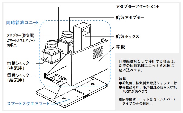 パナソニック FY-MS766E-S 換気扇 レンジフード スマートスクエアフード用 同時給排ユニット 75cm幅 吊戸棚高70cm用 (FY-MSH766D-Sの後継品) [♪◇]