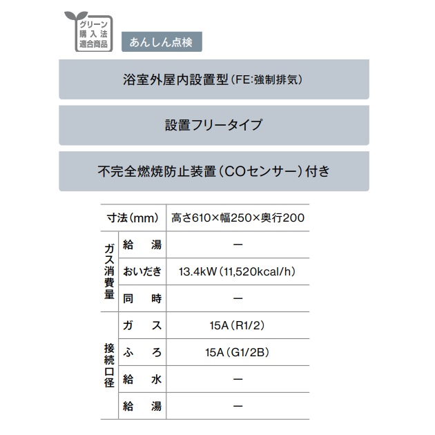 リンナイ RF-111SWF(A) ガスふろがま FE式おいだき専用 浴室外屋内設置型(FE 強制排気) ステンレス外装SUS304 ※受注生産 [§⇔]