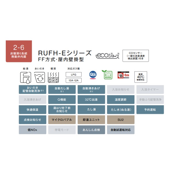 リンナイ【RUFH-E2406SAFF2-6(B) プロパン用】ガス給湯暖房熱源機 エコジョーズ 24号 オート F F方式・屋内壁掛型 20A リモコン別売 [♪]