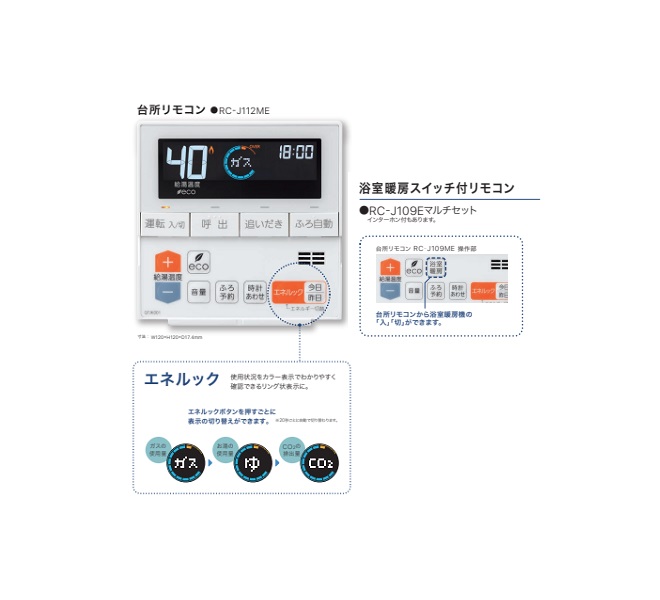 ガスふろ給湯器 ノーリツ RC-J109E マルチセット 浴室暖房スイッチ付リモコン インターホンなし [戻る]