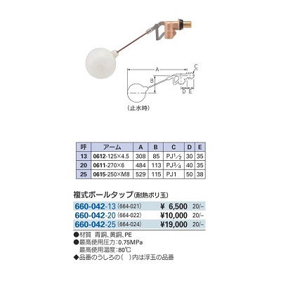 水栓金具 カクダイ 660-042-13 複式ボールタップ 耐熱ポリ玉