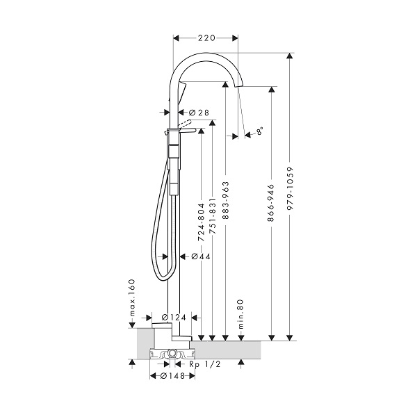 ハンスグローエ 48440000 アクサーワン 床付式バス混合水栓(化粧部) クロム 受注生産品 §♪