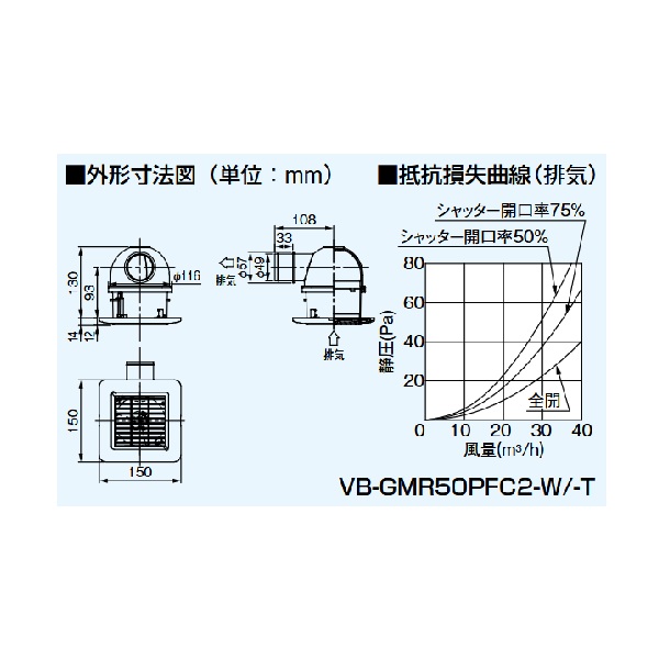 パナソニック VB-GMR50PFC2-W 換気扇 ベンテック部材 給排気グリル 天井用 セパレートタイプ φ50mm 排気用 ホワイト [戻る]