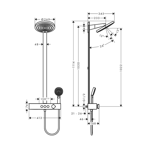 ハンスグローエ 24240000 パルシファイS シャワーパイプ 260 2ジェット シャワータブレット400 クロム ♪