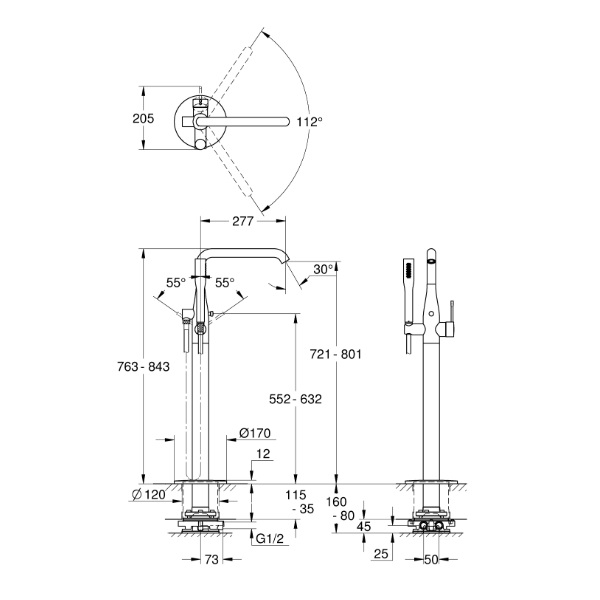 グローエ 23491AL1J 浴室用水栓 エッセンス シングルレバーバス シャワー 混合栓(ブラッシュドハードグラファイト)