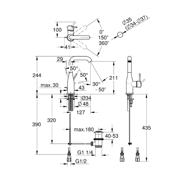 グローエ 32628DL1J 洗面用水栓 シングルレバー洗面混合栓(引棒付)(ブラッシュドウォームサンセット) ※受注生産品 §