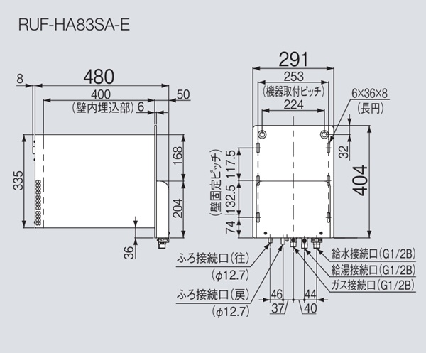 [在庫あり] リンナイ [RUF-HA83SA-E 都市ガス用] ガスふろ給湯器 8.2号 オート 壁貫通型 リモコン別売 ♭☆2