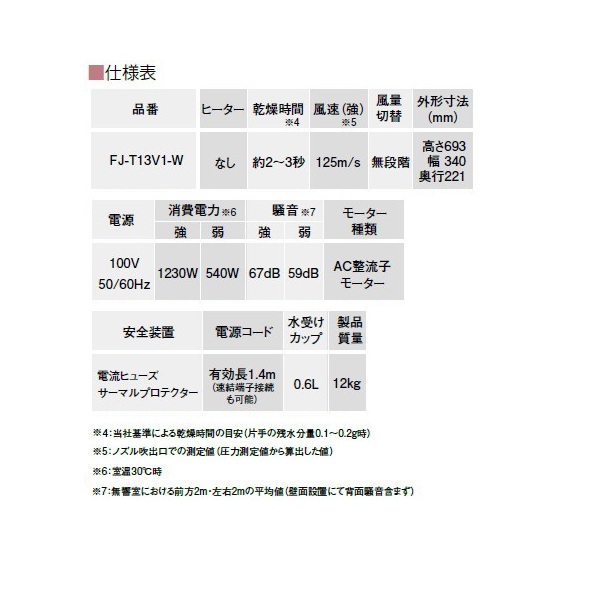 [在庫あり] パナソニック FJ-T13V1-W ハンドドライヤー ホワイト パワードライ 両面吹き出し形 速乾タイプ ヒーターなし ☆