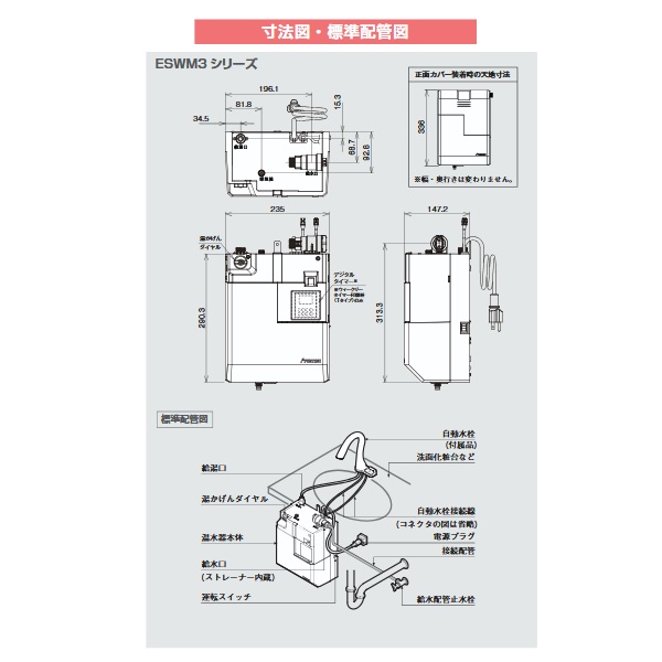 イトミック ESWM3TSW106E0 小型電気温水器 ESW03シリーズ(E) スワン水栓 適温出湯 単相100V 0.6kW 元止式 タイマーあり (ESWM3TSW106D0の後継品) 受注生産 §
