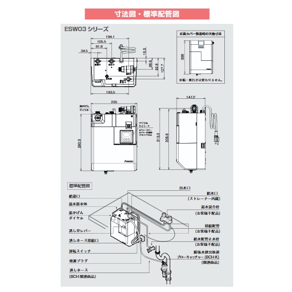 イトミック ESW03TTX106E0 小型電気温水器 ESW03シリーズ(E) 適温出湯タイプ 単相100V 0.6kW 先止式 タイマーあり (ESW03TTX106D0の後継品) 受注生産品 § [戻る]