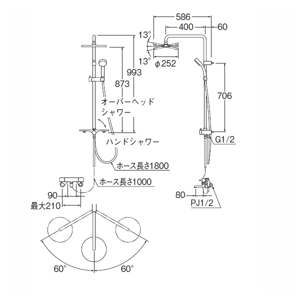 SANEI/三栄水栓 SK18CK-2S1 混合栓 壁付シャワー混合栓 サーモシャワー混合栓 URBAN TOWER 寒冷地用 クロム