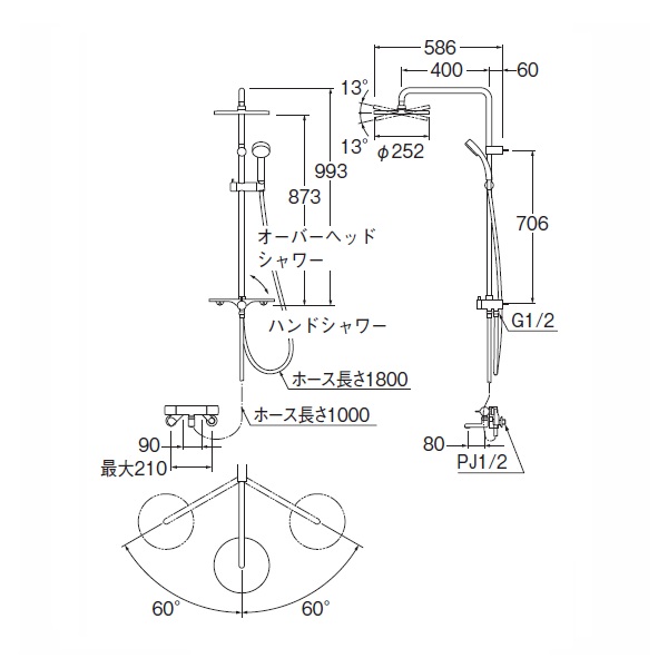 SANEI/三栄水栓 SK18CK-2S1-MDP 混合栓 壁付シャワー混合栓 サーモシャワー混合栓 URBAN TOWER 寒冷地用 マットブラック 受注生産品 §