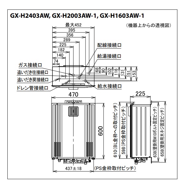 パーパス 『GX-H2403AW 都市ガス』 給湯器 ガスふろ給湯器 24号 エコジョーズ オート 設置フリー形 PS標準設置兼用 パントンクールグレー 2 リモコン別売 ♪∀