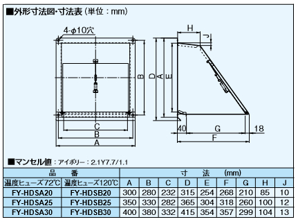 パナソニック 換気扇部材 屋外フード 20cm換気扇用 鋼板製 防火ダンパー付 【FY-HDSA20】 [◇]