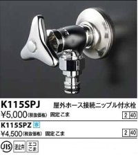 水栓金具 KVK K115SPJ 屋外ホース接続ニップル付水栓