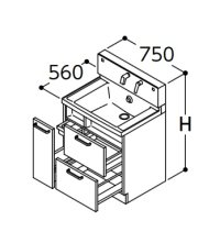 TOTO 洗面化粧台 【LDSWB075BDJEN1 W/P/B/J/C/M 】 サクア 3wayキャビネットタイプ 体重計収納 間口750 洗面ボウル高さ800 ♪