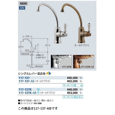 水栓金具 カクダイ 117-137-AB シングルレバー混合栓 オールドブラス [■] [kkd-117-137-ab]