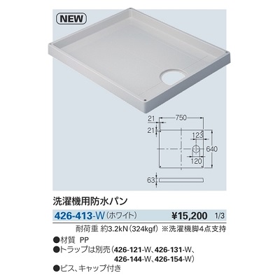 洗面所 カクダイ 426-413-W 洗濯機用防水パン ホワイト [♪■] [kkd-426-413-w]