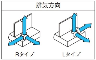 ○ Rタイプの排気ダクトは右上面に、Lタイプの排気ダクトは左上面にあります。