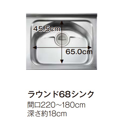 ※水栓穴は【R:右シンク】の場合は【L:左側】、【L:左シンク】の場合は【R:右側】になります。