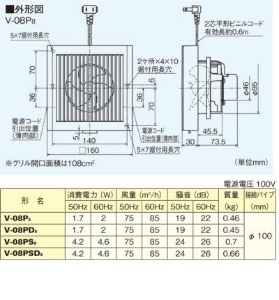 【在庫あり】三菱 V-08P8 換気扇 居室トイレ 洗面所 用 パイプ用ファン 角形格子グリル (V-08P7の後継品) [♭☆2] [v-08p8-sale]
