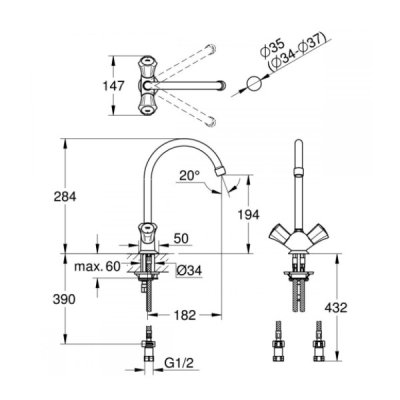 グローエ JP258002 キッチン水栓 コスタ 2ハンドルキッチン混合栓 クローム 一般地 [■] [gr-jp258002]