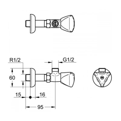 グローエ JP191700 パーツ アングルバルブ 1/2” マーク青 クローム [■] [gr-jp191700]