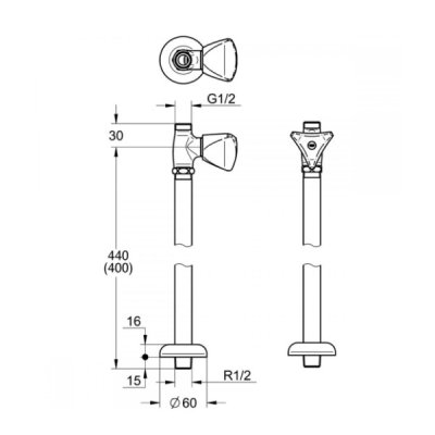 グローエ JP194200 パーツ ストレート型止水栓 1/2” マーク青 400mm クローム [■] [gr-jp194200]