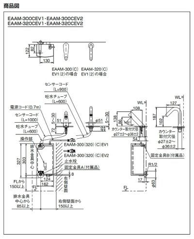 ■ 洗面器や手洗器への取付けは、組合せ可能であることをご確認いただく必要があります。 メーカーカタログの自動水栓と洗面器・手洗器の組合せ一覧表でご確認ください。また、洗面カウンターに直接取り付ける場合、取付カウンターの厚み許容範囲は、5?30mmとなります。